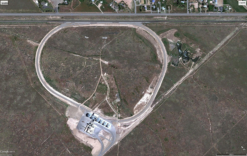 The Simplot loop track utilizes a short siding track offset from the UPRR main line to enter and exit the loop track. The siding track begins with two No. 14 turnouts from the UPRR main line then proceeds through two No. 10 turnouts to form a 7400' loop track. The track is designed for a maximum curvature of 7½ degrees and utilizes 133RE rail, CXT concrete ties and Pandrol FastClip fasteners. Provision was made for a future 2nd loop track on the inside of the existing loop and also for future spurs to the east and south. A gravel access road was placed around the loop to provide access to the track at all points.
