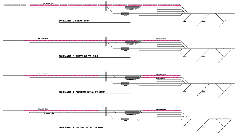 The project involved the preparation of construction plans for a 110 car unit train grain unloading track, a DDGS load out and an ethanol loading yard. The project involved the receipt of a 110 car unit train with three locomotives on the front end and provided a runaround and storage track for the locomotives. The train was broken into 27-28 car strings and shifted between the two tracks through the unload pit. The project was constrained on the west end by an existing over ground pipeline and an access road to the power plant on the east that limited the length of the yard tracks and prevented a loop track facility. Involved coordination between the Port, BNSF and the Portland and Western Railroad. Responsible for construction oversight of rail contractor.